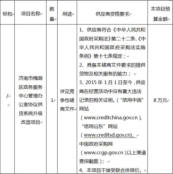 二、采購項目名稱:濟南市槐蔭區(qū)政務(wù)服務(wù)中心管理辦公室協(xié)議供貨系統(tǒng)升級改造項目