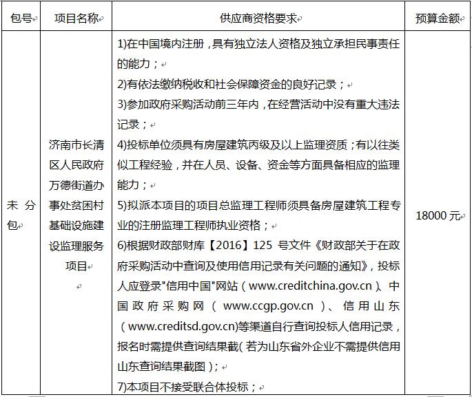濟南市長清區(qū)人民政府萬德街道辦事處貧困村基礎(chǔ)設(shè)施建設(shè)監(jiān)理服務(wù)項目詢價公告