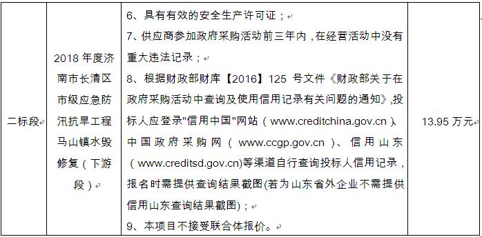 二、采購(gòu)項(xiàng)目名稱:濟(jì)南市長(zhǎng)清區(qū)馬山鎮(zhèn)人民政府水毀修復(fù)工程